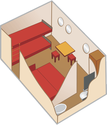 4-местная, 1 нижнее место + 1 верхнее место, а также раскладной 2-местный диван. с туалетом и душем s=10,00 кв.м. шкаф для одежды радио эл.розетка иллюминатор |