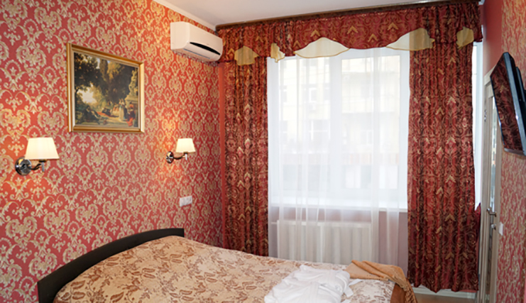 Отель находится в семиэтажном здании, расположенном на одной из главных городских магистралей. Небольшой жилой фонд рассчитанный всего лишь на 12 человек. Однако отдыхающих ожидают комфортабельные и по-домашнему уютные номера. Все номера оснащены собственной ванной комнатой и необходимой техникой: везде есть кондиционер, телевизор, фен, электрочайник. А в номерах улучшенной категории комфорта есть джакузи.