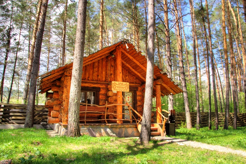 Просторная территория деревни расположена недалеко от основной трассы, при этом в тихом месте в окружении соснового леса. Пешеходные мостики, беседки и скамейки дополняют атмосферу уюта. Все постройки выполнены из массива кедра. Для размещения предусмотрены различные варианты корпусов - 2-4-местные избушки и коттеджи-терема. Во всех домах есть веранды, в 2-этажных коттеджах – балконы. В избушках удобства (душ, туалет) расположены внутри или в 30-50 метрах в теплом санблоке. Оснащение номеров включает самые необходимые предметы, без ТВ и холодильника. Вся мебель выполнена из дерева. Обязательно предусмотрена обеденная зона. В 3-4 местных домиках - 2-этажные кровати.