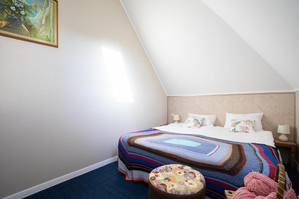 Трехэтажное здание гостиницы с мансардой способно единовременно принять до 26 человек. Отдыхающим предлагаются двухместные номера категории Стандарт и Семейный с ванной или душем. В каждом номере есть мини-холодильник, телевизор и косметические принадлежности.