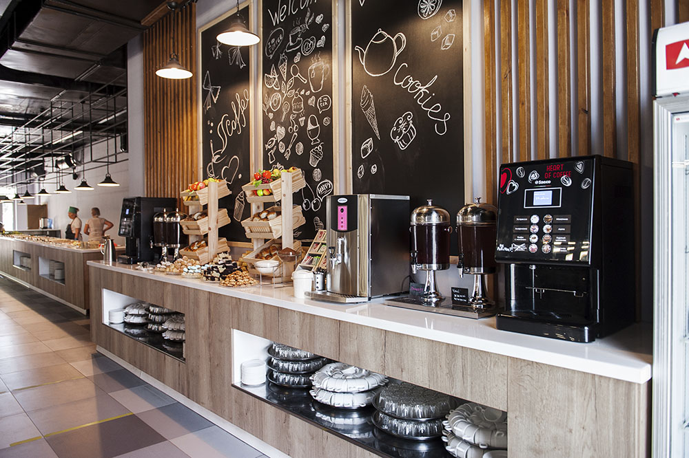 - основной ресторан: с открытой кухней: плов, гиро, пицца, блины с различной начинкой, картофель фри, куриные наггетсы; обновленный зал с зонированием шведской линии.;
