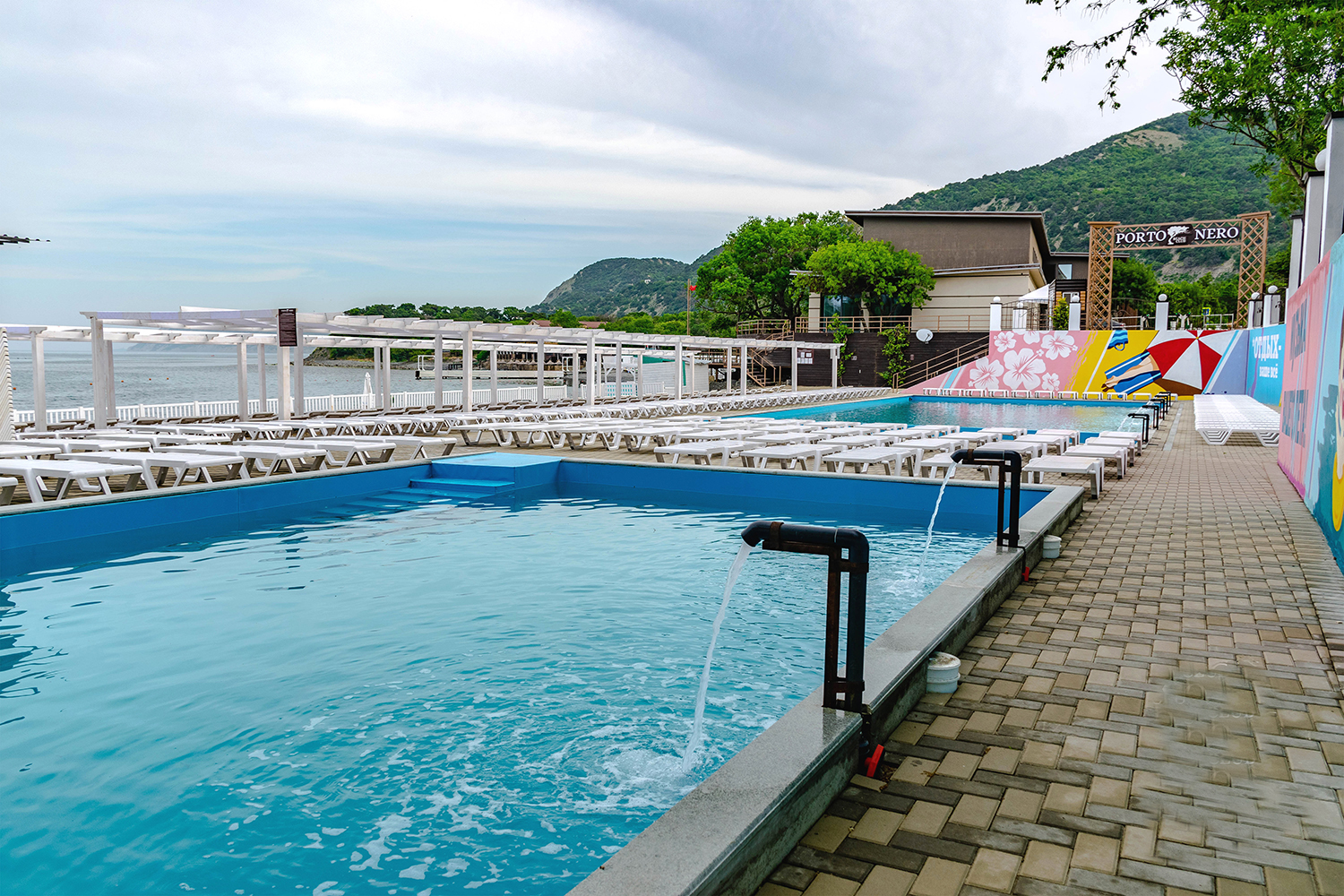 Новинка 2022 г. пляж Porto Nero Beach club. Общая площадь 0,52 ГА на 300 мест. График работы: с 08:00-20:00.