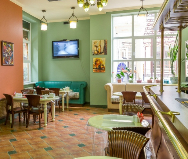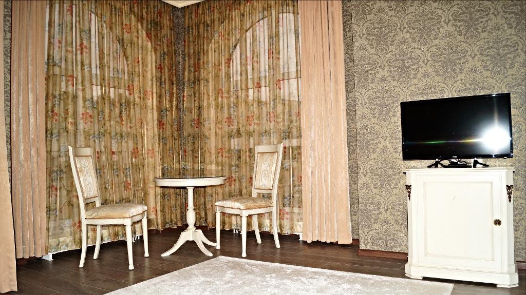 Четырехэтажное здание отеля (без лифта) — часть городского торгово-делового центра. Его небольшой жилой фонд предлагает гостям 15 номеров, рассчитанных на единовременное заселение 36 человек. Номера Стандарт, Люкс, Студия, Апартаменты оснащены необходимой техникой, хорошо меблированы и, как и вся гостиница, стилизованы под европейский интерьер конца XIX века.