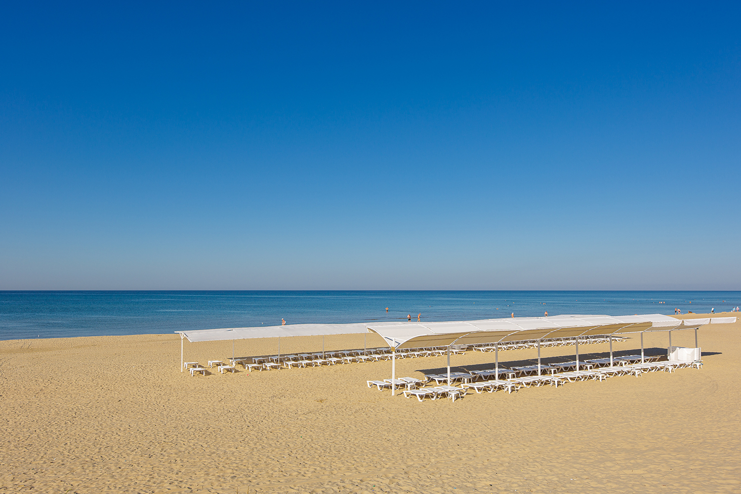 Поселковый песчаный пляж находится на расстоянии 200 метров от гостиничного комплекса. Он оборудован необходимыми для полноценного отдыха постройками, удобствами и службами.