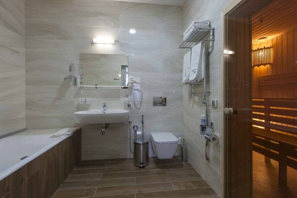 2 санузла: ; биде: ; сауна: ; с душем: ; тапочки: ; туалетные принадлежности: ; фен: ; халат: ;